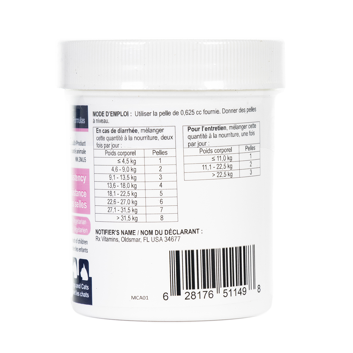 Finely ground hydrated calcium aluminosilicate, a geological nanomaterial that adsorbs bacterial enterotoxins and increases the reabsorption of intraluminal water in the gastrointestinal tract, helping to regulate bowel function and normalize stool quality in dogs and cats.